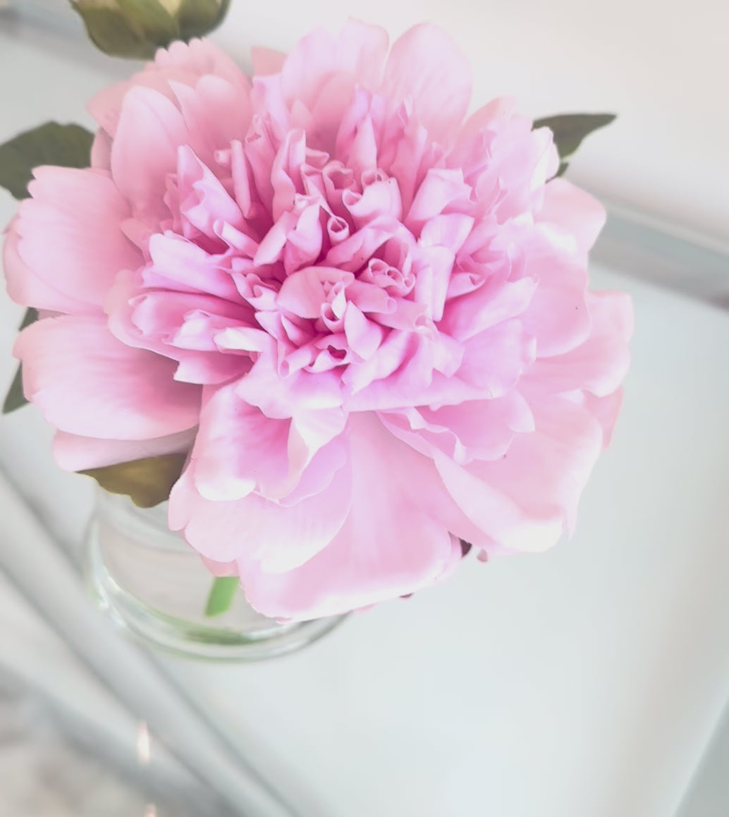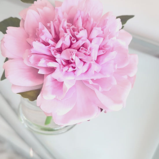 Measures 7” in height and about 6” width. The large peony bloom 6” across