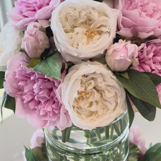 Real Touch Pink Peony and White Rose Floral Centerpiece